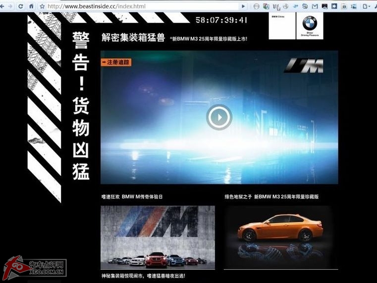歷時半月的病毒轉(zhuǎn)播終告落幕,M3 Tiger Edition轟鳴著駛出這只集裝箱,為M3的25歲生日送上了一份完美的賀禮。而接下來的M傳奇體驗活動,將更多車迷親身體驗到“M”的魅力。
